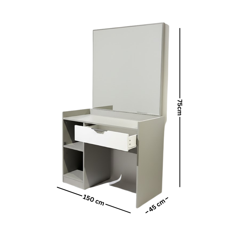 The room comes in gray and white colors for a calm and modern look that suits various decors, and includes bed + wardrobe + 2 nightstands + dressing table with frame, making it an ideal set for a complete and integrated bedroom from Oscar Furniture.