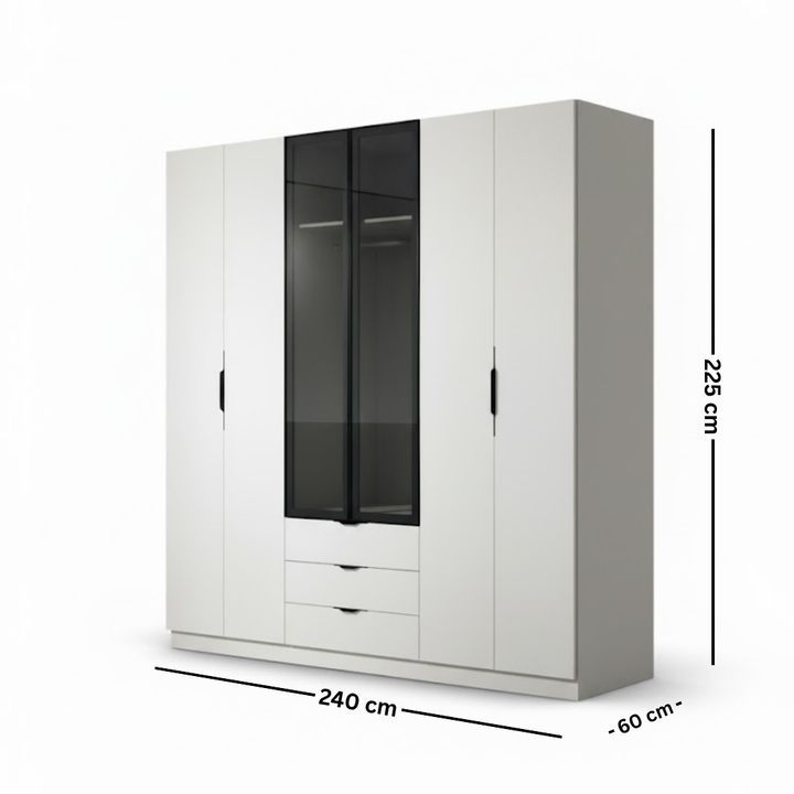 All hinges and slides are high-durability Chinese-made to ensure smooth movement and longer lifespan, in addition to LED lighting inside the glass door that gives the room a luxurious touch and a comfortable atmosphere.