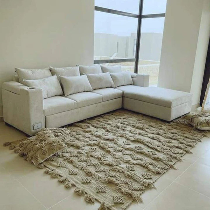 Oscar Rattan's handmade pure wool rug is of high quality and exceptional craftsmanship. They are soft and warm to the touch, providing great comfort underfoot. Its design combines traditional and modern styles, making it a distinctive piece that suits various decor styles. The Oscar Rattan Rug is not only a functional piece, it is also an aesthetic highlight that adds a touch of luxury to any space.