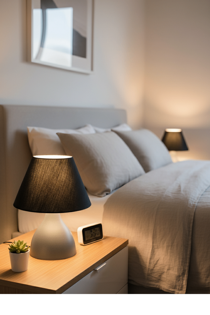 The lampshades feature a simple and elegant design, adding a warm and calm touch to the room. Its base is sturdy and elegantly shaped, while the light shade provides soft, comfortable lighting, making it perfect for reading nooks or to decorate side tables. Lampshades enhance the overall atmosphere of the room, adding a sense of comfort and elegance.