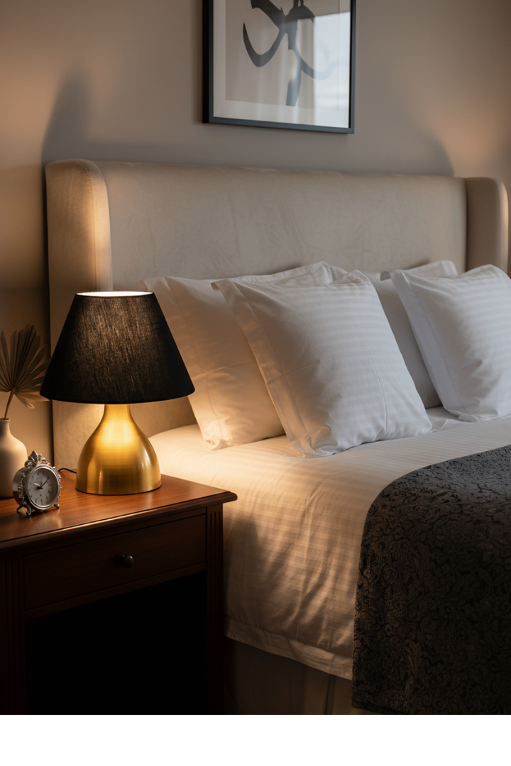 The lampshades feature a simple and elegant design, adding a warm and calm touch to the room. Its base is sturdy and elegantly shaped, while the light shade provides soft, comfortable lighting, making it perfect for reading nooks or to decorate side tables. Lampshades enhance the overall atmosphere of the room, adding a sense of comfort and elegance.