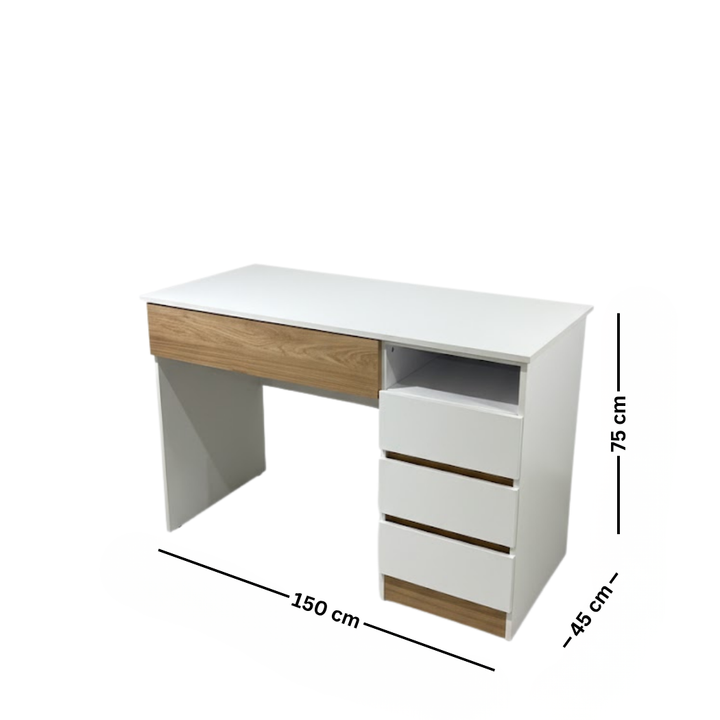 Enjoy a complete bedroom that combines practical design with an elegant look, featuring a comfortable bed, spacious wardrobe, functional dresser, and an ideal desk for daily use. The room is made from durable materials that withstand long-term use, with calm colors blending white and wood tones for a harmonious and cheerful decor. Choose quality and elegance with Oscar Furniture.