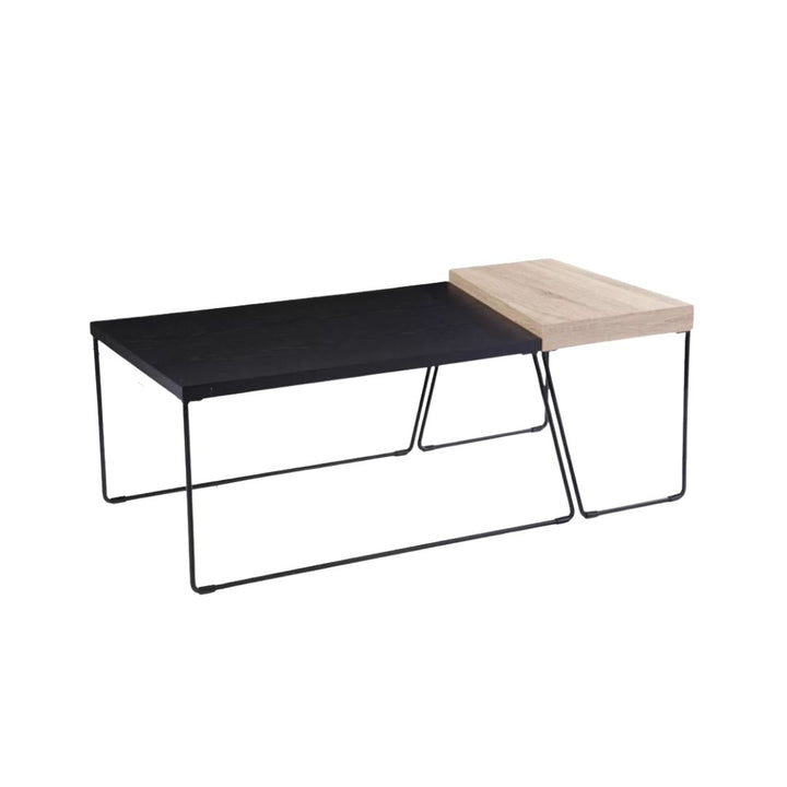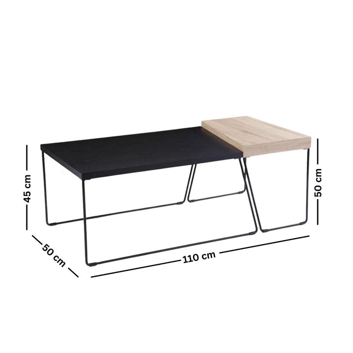 Set of metal coffee tables with wooden top – elegant modern design (2 pieces)