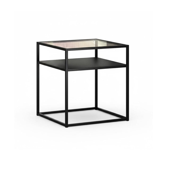Combine practical elegance and high quality with the ZSL-003 table made of steel coated with electrostatic oven paint resistant to rust and moisture. It features a sophisticated design combining a transparent glass top and a MDF wood bottom surface to provide the perfect blend of luxury and practicality. Its sleek square design makes it ideal for use as a side table next to the sofa or bed, adding a distinctive modern touch to any interior space.