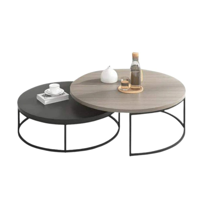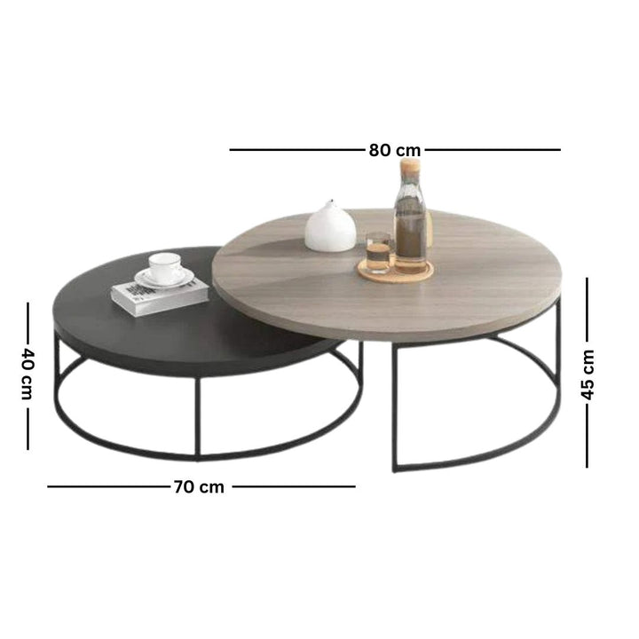 Set of metal coffee tables with wooden top – elegant modern design (2 pieces)