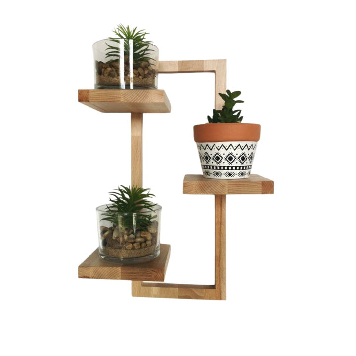 A wall shelf with a simple and modern design that combines functionality and natural aesthetic appeal. Made entirely from luxurious musk wood known for its durability and natural beauty, which adds warmth and elegance to any space. Its medium-sized vertical design makes it perfect for displaying antiques, accessories, or small plants in an organized and attractive way. An elegant decor piece that adds a distinctive wooden touch to any room in your home with Oscar Furniture quality.