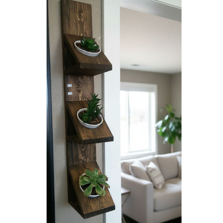 A wall shelf with an elegant vertical design that combines simplicity and the natural beauty of wood. Made entirely from premium musky wood known for its durability and strength, giving it a warm look that suits various decor styles. Perfect for displaying antiques, accessories, and small plants, it adds a stylish natural decorative touch to any indoor space. Discover the fine wooden details with Oscar Furniture.