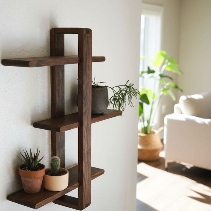 A wall shelf with an elegant vertical design made entirely of high-quality natural Moski wood, giving you the perfect blend of durability and natural beauty. It features a warm color that adds a sophisticated and cozy touch to any indoor space. Its vertical design makes it an ideal choice for displaying collectibles, plants, or accessories in a coordinated and attractive way. A decorative piece that adds a luxurious wooden character reflecting refined taste with a touch of Oscar Furniture.