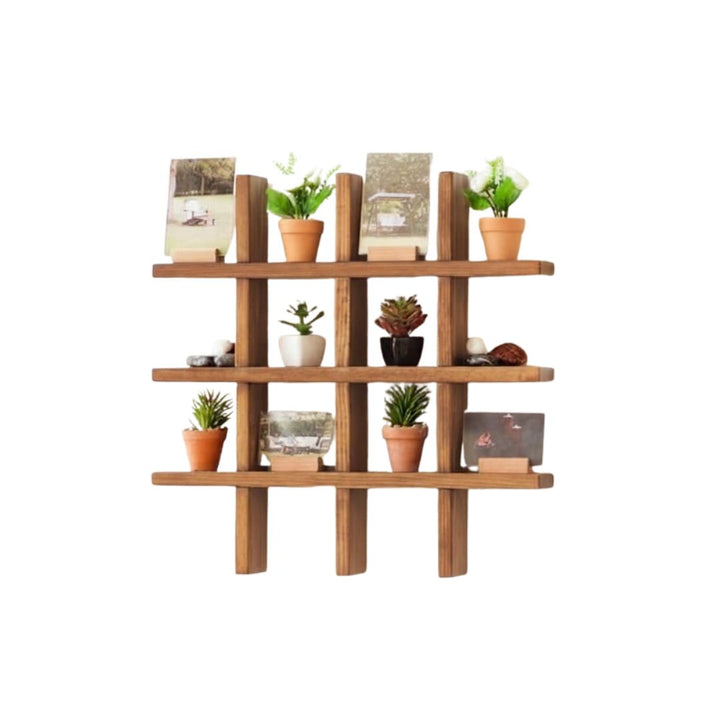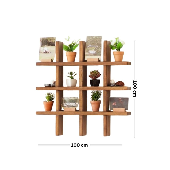 A wall shelf with a wide design that combines natural beauty and high durability, made entirely of natural moski wood known for its strength and warm appearance. Its large square design makes it perfect for displaying books, collectibles, accessories, or plants in an organized way that adds an elegant artistic touch to any indoor space. A decor piece that combines elegance and functionality and gives your walls a distinctive presence reflecting Oscar Furniture's quality.