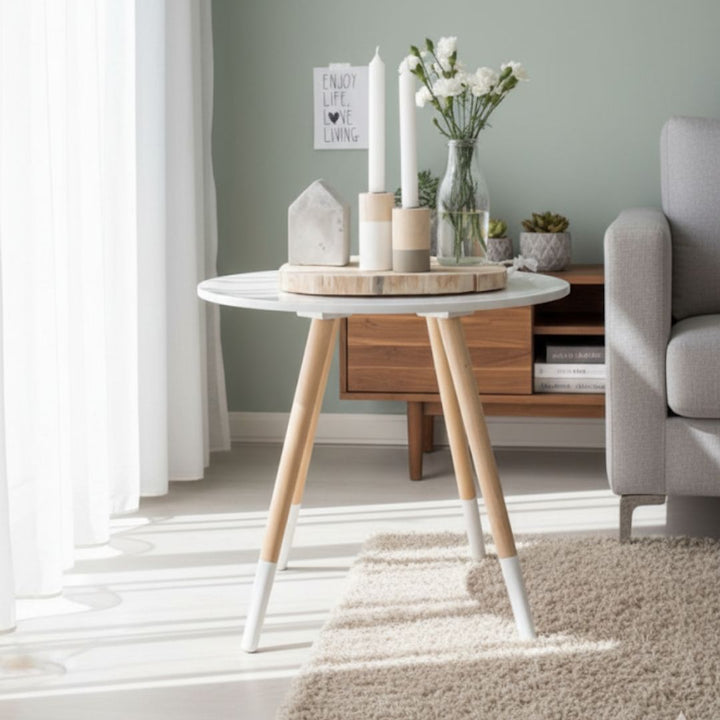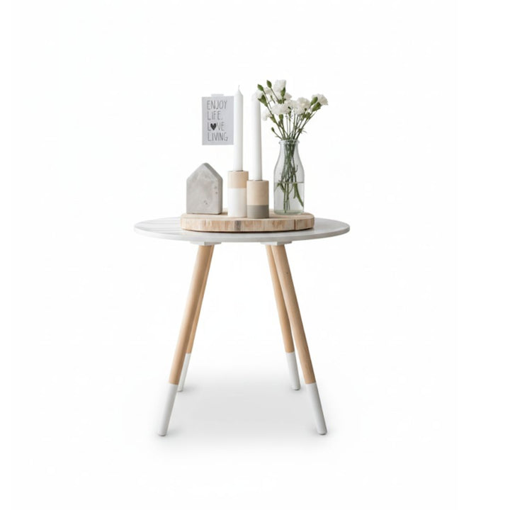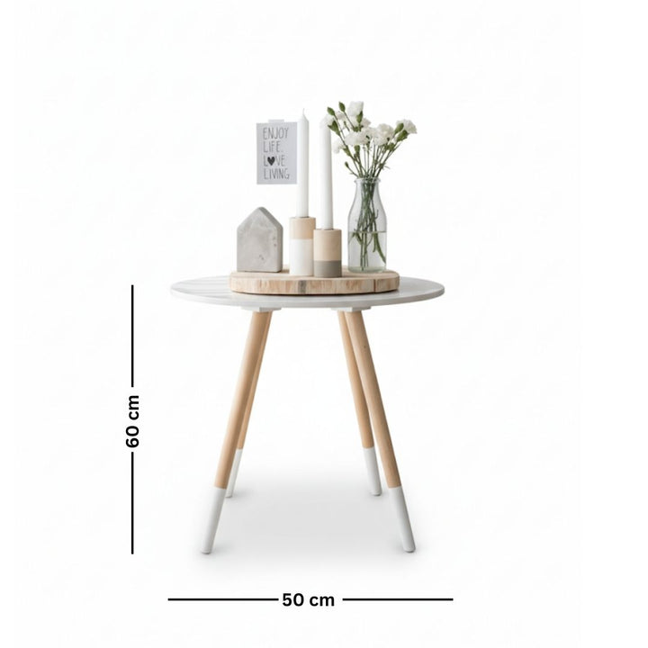 MDF wood side table with musky legs with duko paint + oyster – model CHW-067