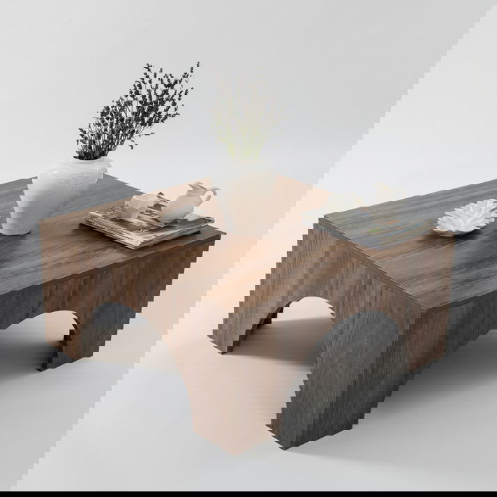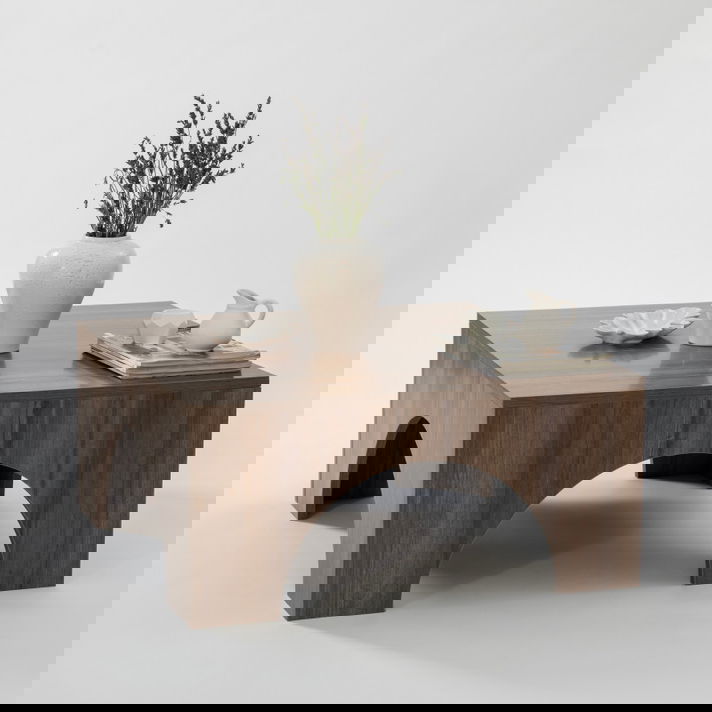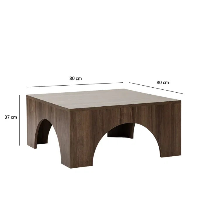 Add a warm touch to the living room with a square coffee table in an attractive wooden brown color.