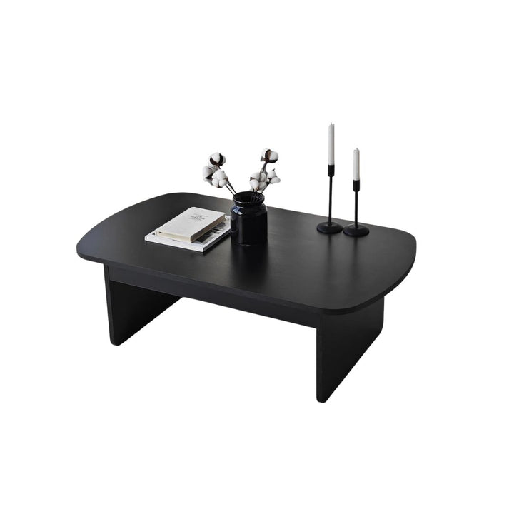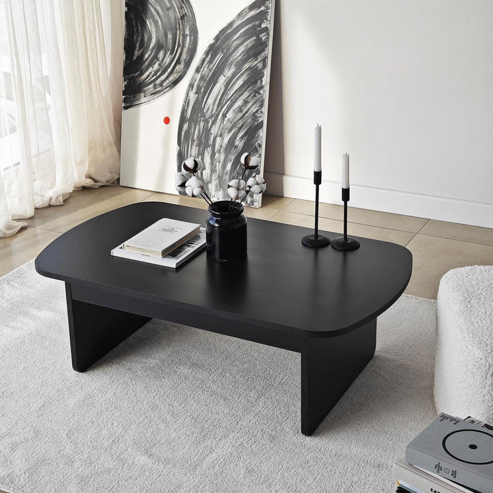 Add a touch of luxury to the living room with a modern black rectangular coffee table.