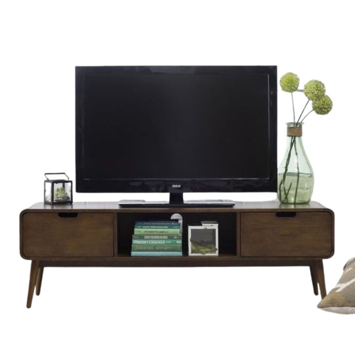 A luxurious TV unit that combines modern elegance and high durability. Made from strong counter wood covered with natural alder veneer that adds a touch of warmth and natural beauty to the room. It comes in perfect dimensions making it suitable for large and medium screens, with a practical surface and organized space to arrange devices and decorations in an elegant style. Its balanced modern design makes it a key decorative piece that adds a sophisticated and practical character to the living room from Oscar Furniture.