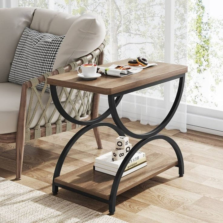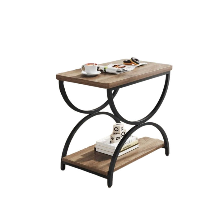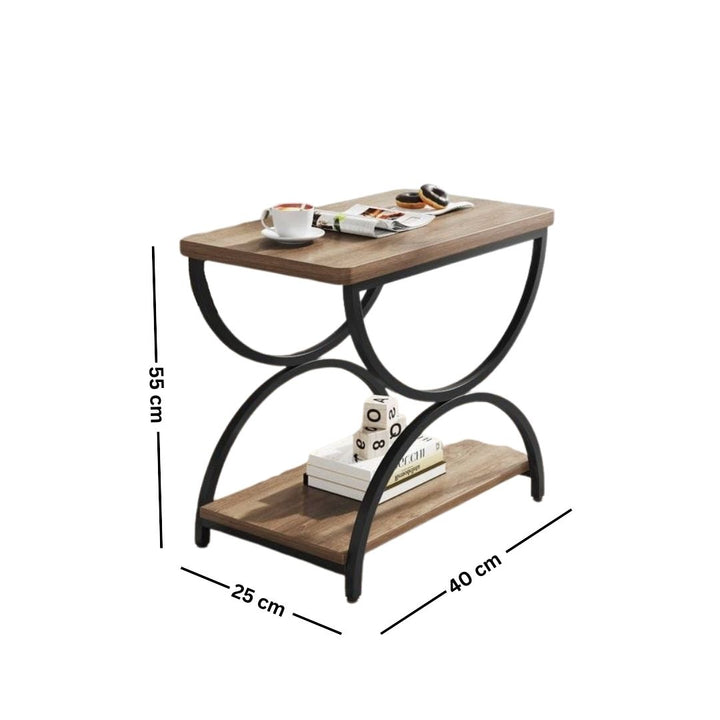 ترابيزة جانبية معدنية بسطح خشبي – تصميم عصري أنيق