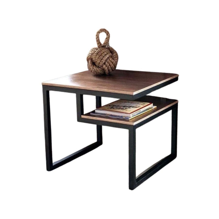 ترابيزة جانبية معدنية بسطح خشبي – تصميم عصري فاخر