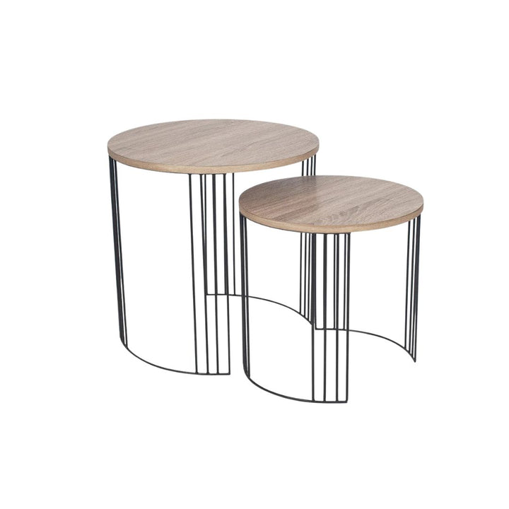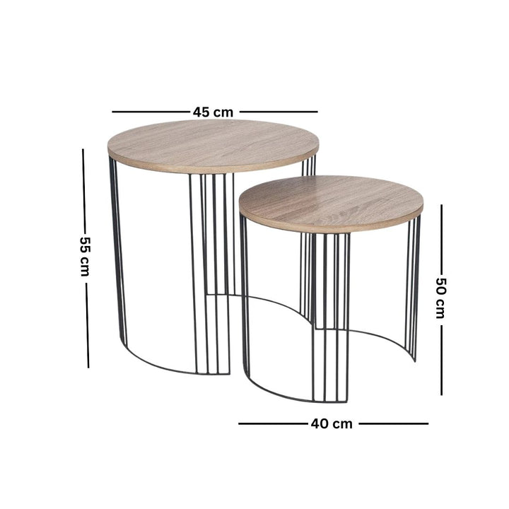 طقم ترابيزات جانبية معدنية بسطح خشبي – تصميم مودرن أنيق (عدد 2)
