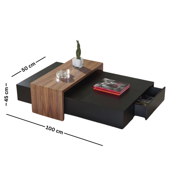 ترابيزة قهوة مودرن KBA-005 من خشب MDF – تصميم أنيق بمقاس 100×50 سم مع درج تخزين عملي