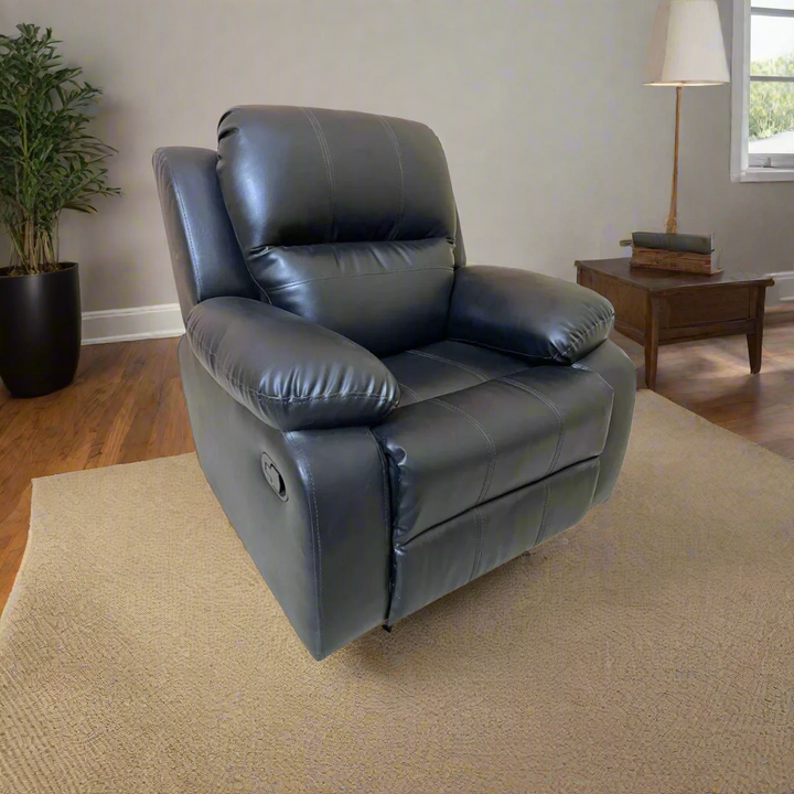 كرسي ريكلاينر فاخر – جلد فاخر سهل التنظيف مع هيكل خشب زان أحمر