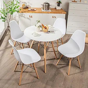طقم سفرة بلاستيك أبيض مع أرجل خشب زان - 4 كراسي + ترابيزة 80 × 80 × 75 سم