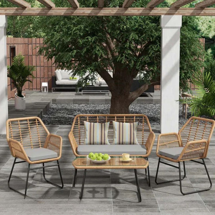 - لون المنتج : رتان بيج مشبح - قماش رمادي فاتح