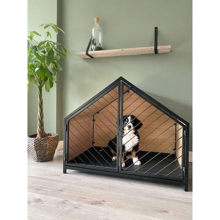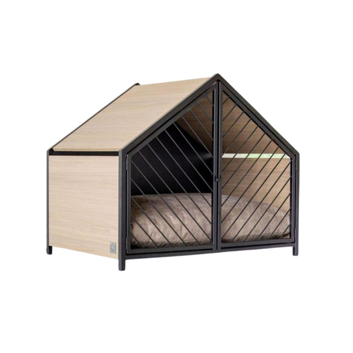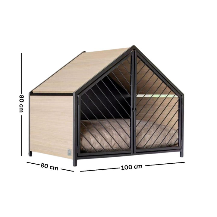 منزل حيوانات معدني بسطح خشبي – تصميم عملي وأنيق