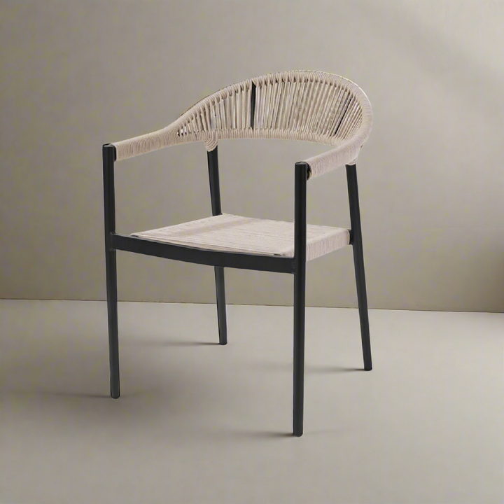 هذا الكرسي مصنوع من حديد مطلي بدهان إليكتروستاتيك مقاوم للصدأ والعوامل الجوية، ومشدود بأحبال معالجة خصيصًا لتحمل الحرارة والرطوبة.