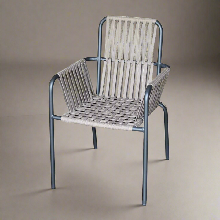 كرسي مطاعم وكافيهات من الحديد المشدود بأحبال رمادية مع قماش ووتر بروف مقاوم للعوامل الجوية – موديل OS-030