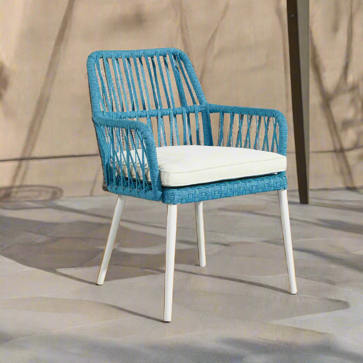 كرسي مطاعم وكافيهات من الحديد المشدود بأحبال رمادية مع قماش ووتر بروف مقاوم للعوامل الجوية – موديل OS-031