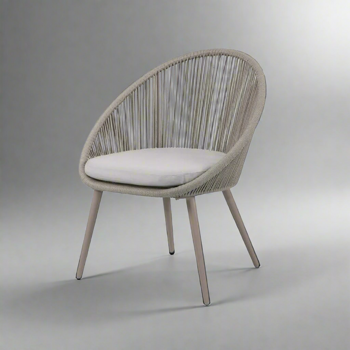 يتميز هذا الكرسي بتصميمه العصري وهيكله المتين المصنوع من حديد مطلي بدهان إليكتروستاتيك مقاوم للصدأ والعوامل الجوية، ومشدود بأحبال معالجة خصيصًا لتحمل أشعة الشمس والرطوبة.