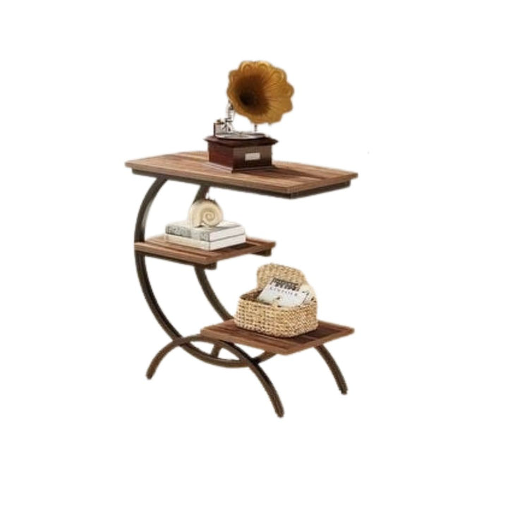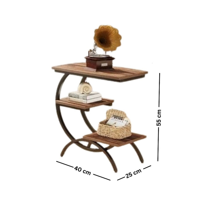ترابيزة جانبية معدنية بسطح خشبي – تصميم عصري أنيق