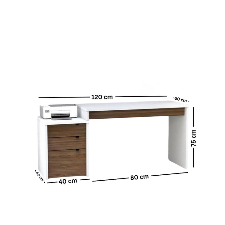 • الابعاد :  العرض الكلي 120 سم - عمق المكتب 60 سم - الارتفاع 75 سم - عرض الوحدة 40 سم - عمق الوحدة 40 سم - عرض المكتب 80 سم
