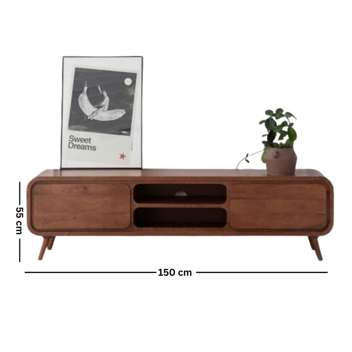 توفر سطحًا مثاليًا لتثبيت التلفزيون ومساحات منظمة للأجهزة والديكورات.