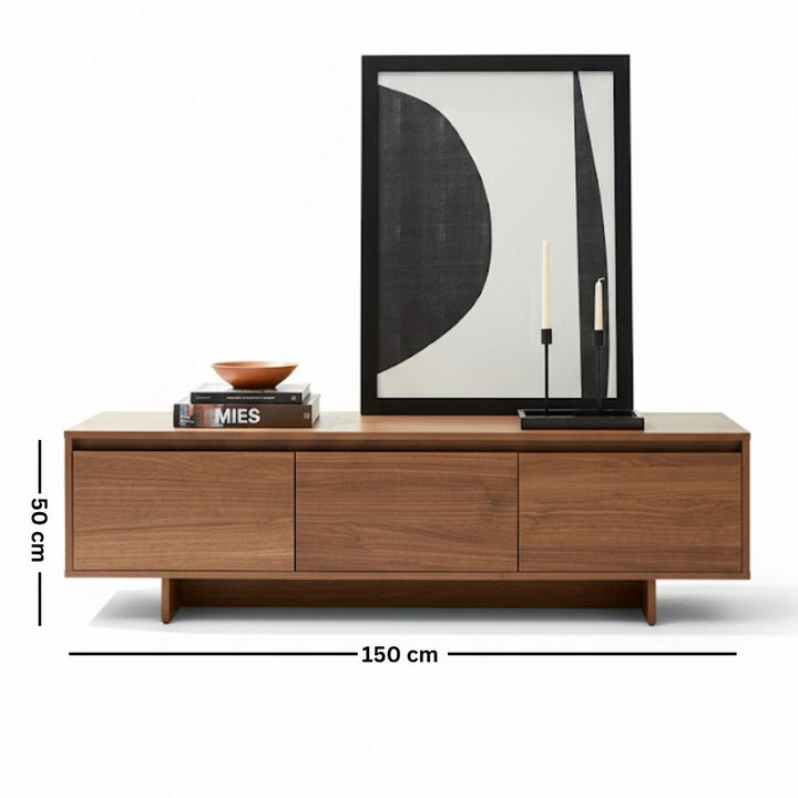 وحدة تلفزيون بتصميم أنيق يجمع بين البساطة والمتانة والفخامة الطبيعية. مصنوعة من خشب الكونتر القوي والمغطى بقشرة الأرو الطبيعي الفاخرة، لتمنح الغرفة طابعًا دافئًا ومتناسقًا مع مختلف أنواع الديكور. بفضل أبعادها العملية، توفر سطحًا مثاليًا لتثبيت الشاشات ومساحة منظمة لترتيب الأجهزة والديكورات. قطعة عصرية تضيف لمسة فخمة من الذوق الراقي إلى منزلك من أوسكار فرنتشر.